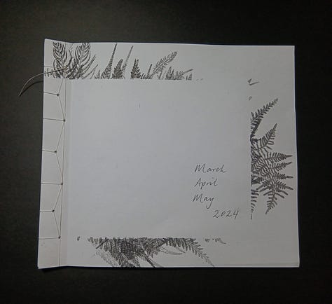 March April May 2024, 45 leaves, 240x210mm, Japanese stab binding: hemp leaf binding / Asa-No-Ha Toji,